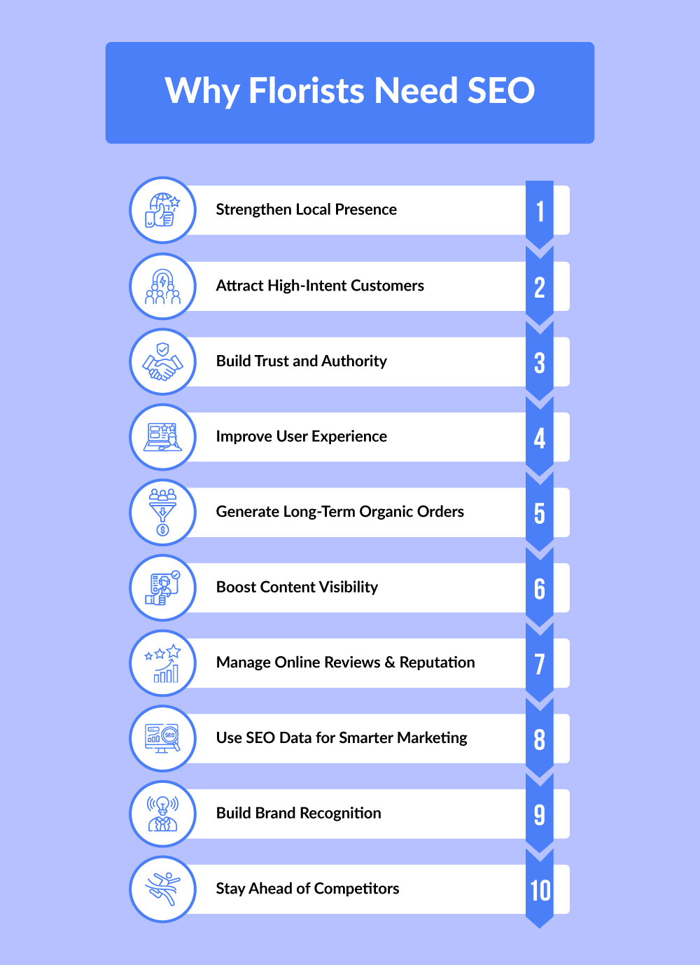 SEO gives your flower business a competitive advantage in a saturated local market.