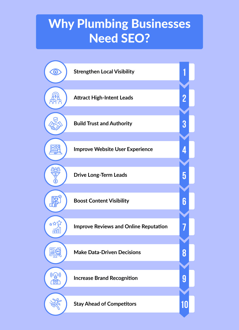 Local SEO ensures your plumbing business shows up in Google Maps, local directories, and city- or neighborhood-specific search results. This makes it easier for nearby homeowners, businesses, or property managers to contact you, schedule service appointments, or request emergency plumbing assistance.